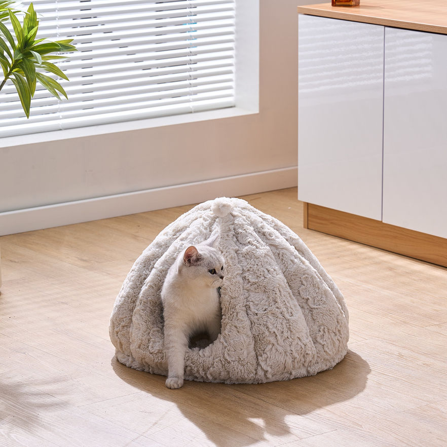 - Private Space: The cozy plush material and a fully enclosed hut helps create a safe and calming environment, reducing stress and anxiety for your pet.